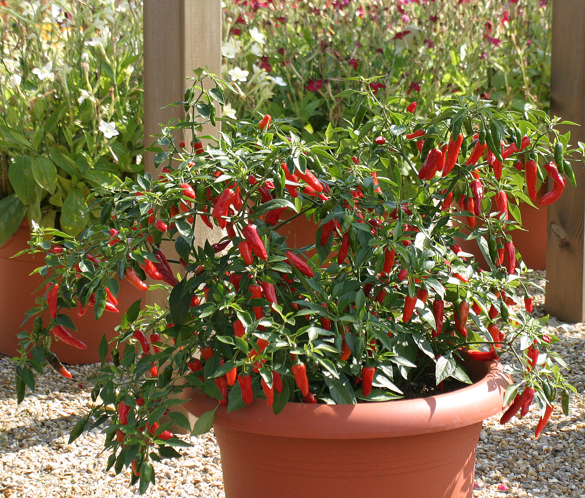 Apache är en mycket prunkande, kompakt sort som producerar ett överflöd av mycket eldiga, klarröda frukter. En mycket anpassningsbar växt som växer bra i de flesta krukor. Säljs i förpackningar med 100 frön.